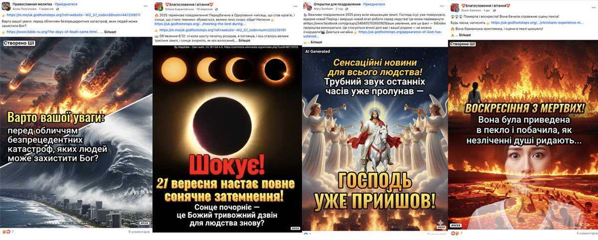 In Ukraine, the “Church of Almighty God” disguises itself on social media as something familiar and “local.” On Facebook, these are pages, groups, and accounts with names that evoke religious or emotional sentiments, such as “Prayer,” “God’s Love,” “Orthodox Family,” “Happy Birthday Greetings,” or “Cards for Friends.” On the surface, they look like ordinary religious or greeting communities. But on closer inspection, the façade begins to crack: Ukrainian-language content is often administered from abroad, while the network reveals itself through language mistakes, calques, and odd mismatches between text and images.