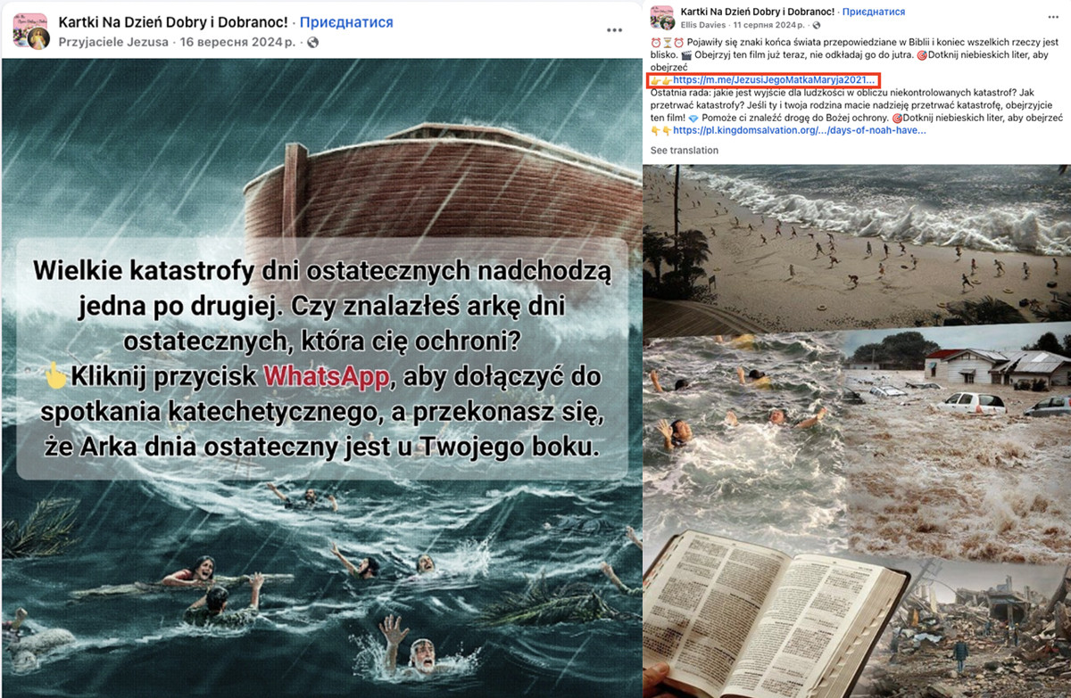 Mimicking the dominant religion. First, CAG representatives create pages, groups, and accounts that appear “local”: in Poland—“Catholic,” in Romania—“Orthodox,” and so on. Names, visuals, and language are tailored to feel familiar and trustworthy within each country.