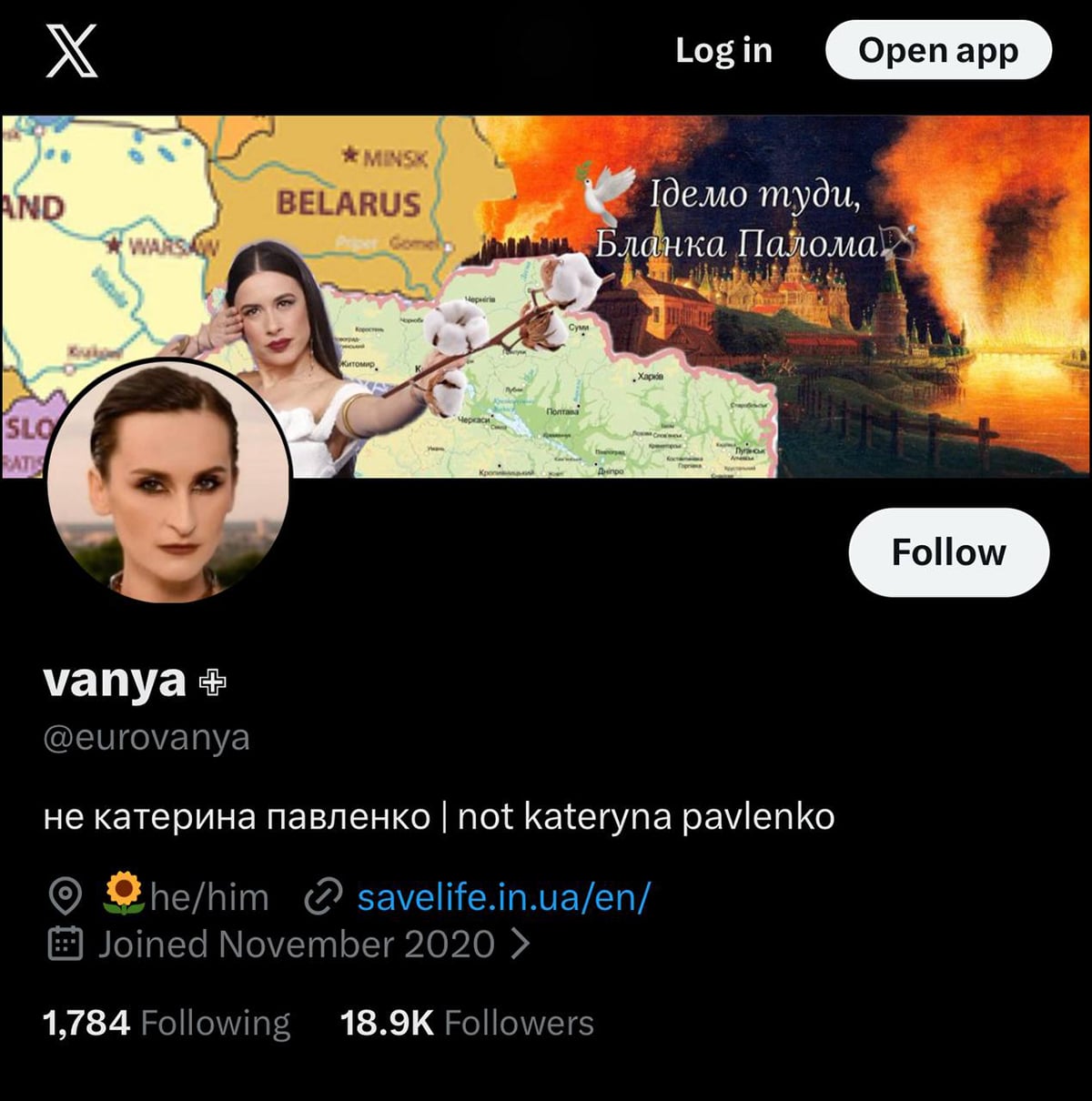 On X (Twitter) and TikTok, accounts under the nickname Eurovanya stand out among those that actively support Ukraine. There you can find English-language materials about Russian aggression, stories of its victims, and appeals to the international community. The most popular video on this TikTok profile has garnered 15 million views and nearly 2 million likes, and its tweets about Ukraine have been reposted by such prominent people as US Congresswoman Alexandria Ocasio-Cortez, Austrian politician Günter Felinger, and American historian Timothy Snyder. Eurovanya's accounts have more than 255,000 followers on TikTok and nearly 19,000 on X.
