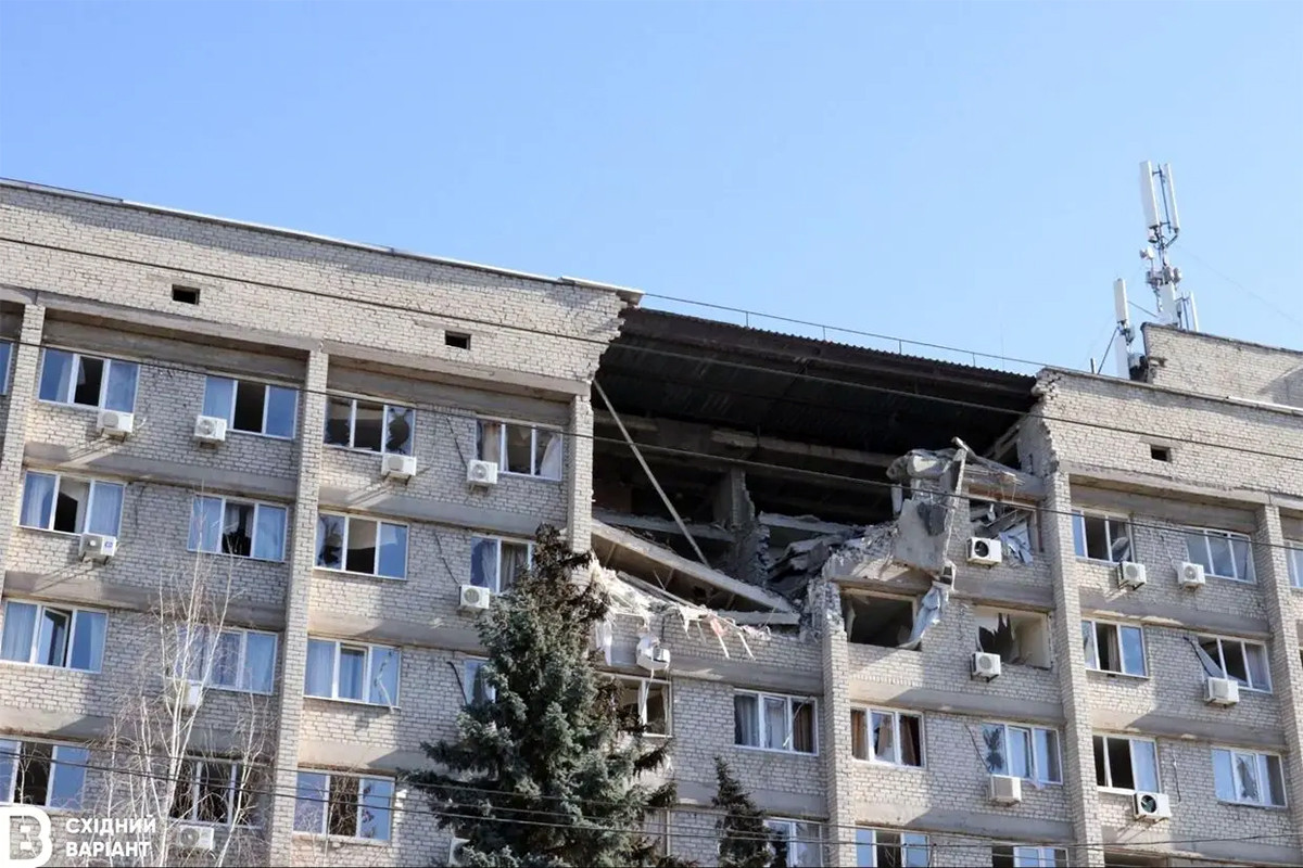 A damaged building in Kramatorsk. Photo from a report by Alina Shevchuk