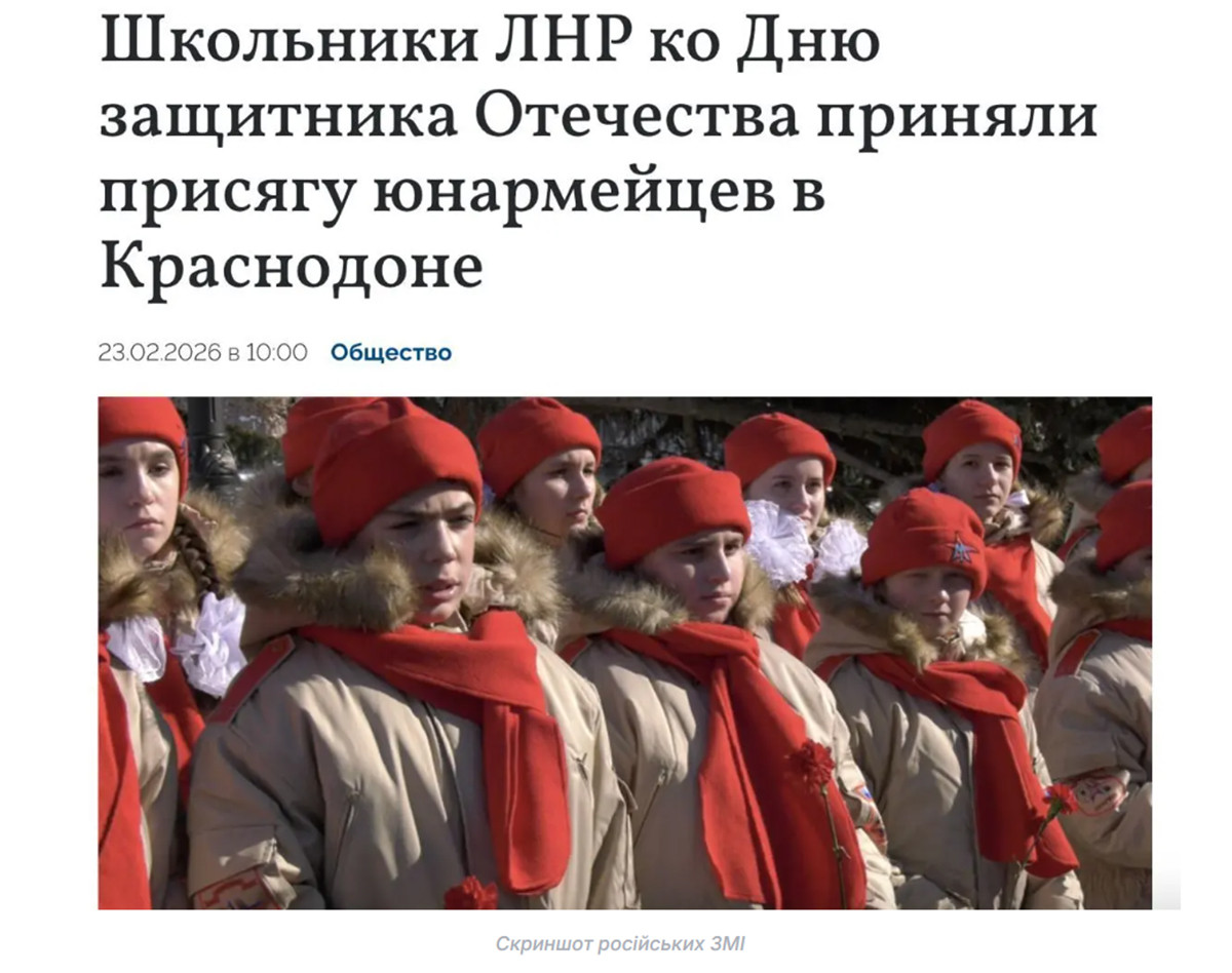 Screenshot from Inha Pavlii’s article on the militarization of youth in occupied territories