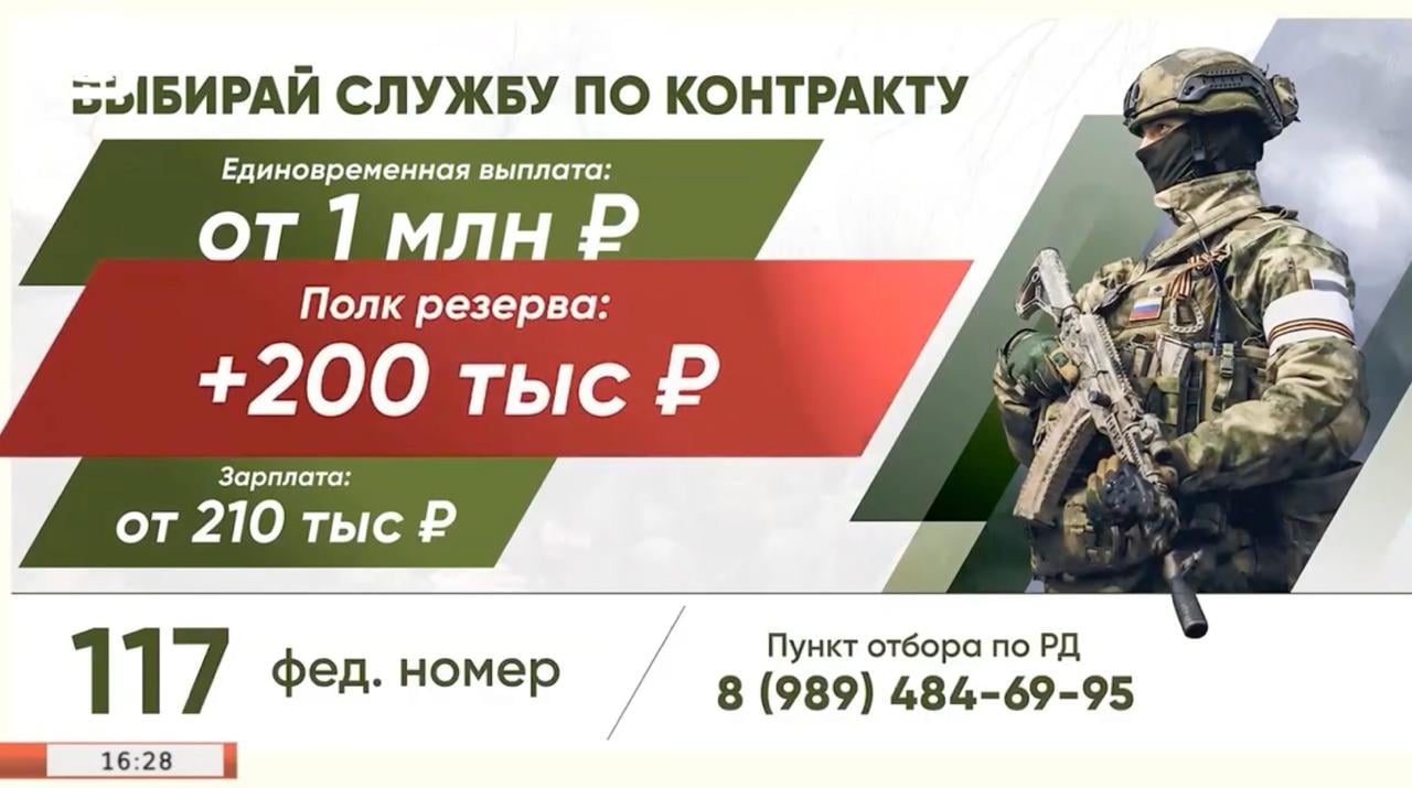 This recruitment advertisement of the Russian Armed Forces was broadcast on 24 December 2024 by the RGVK Dagestan channel, transmitted via the Eutelsat 36D satellite by operator Tricolor.
