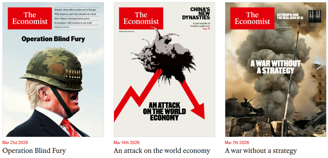 The Economist magazine covers for March 2026